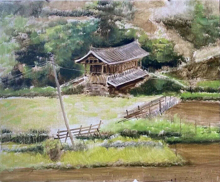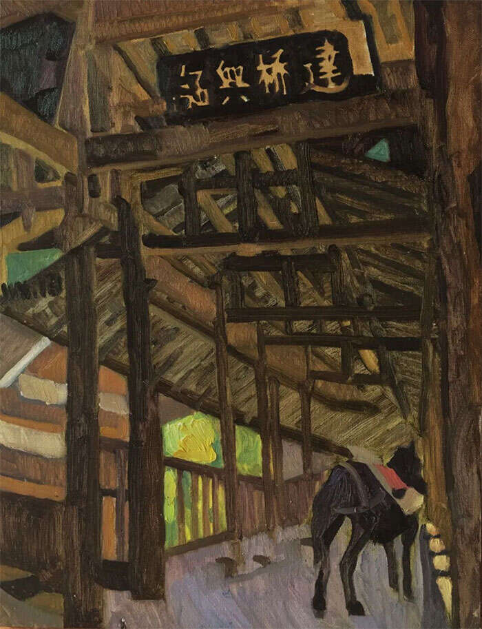 古棕,《侗族风雨小桥》,50x60cm,2023年