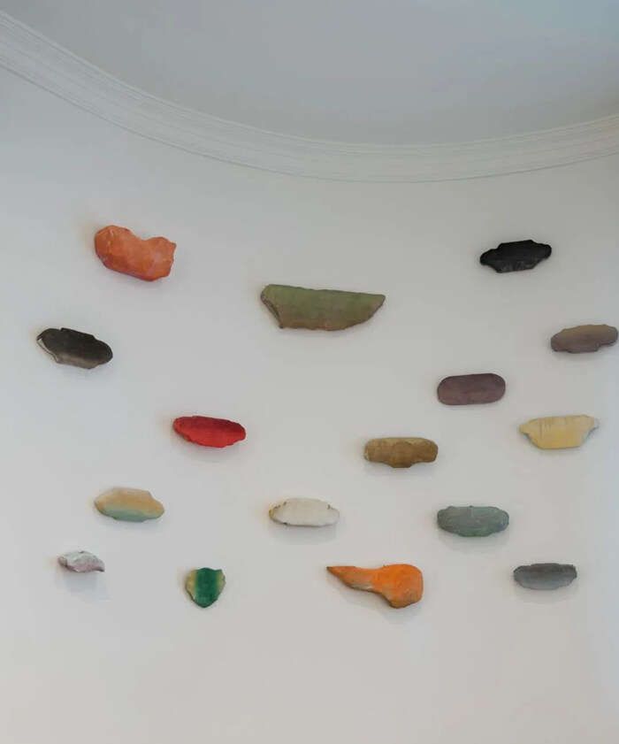 郑江,《河流14》,凝灰岩、墨、亚麻布,120×82 cm,2022