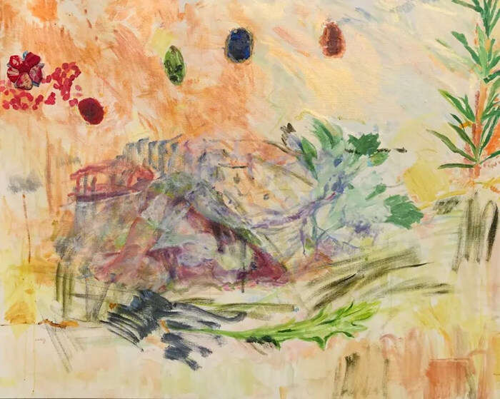丛丛,《草莓花正在开》,布面油画,105X130 cm,2020