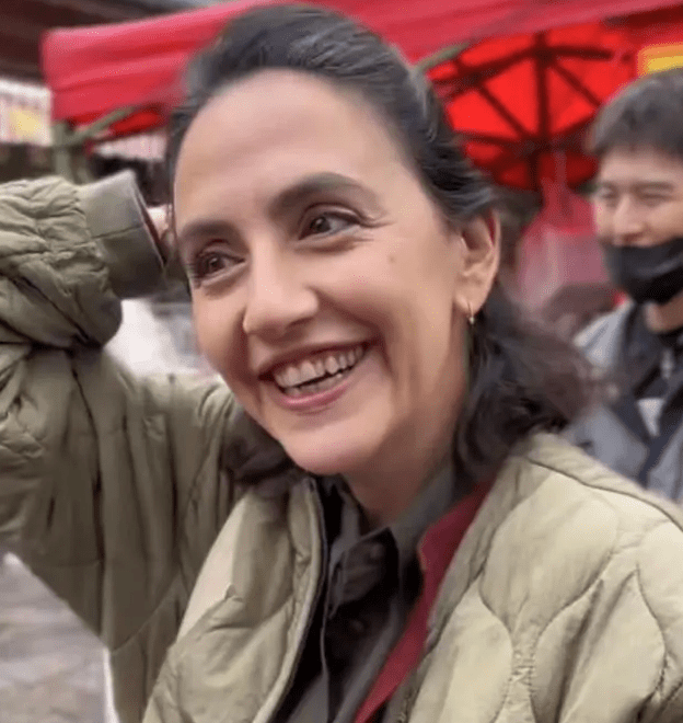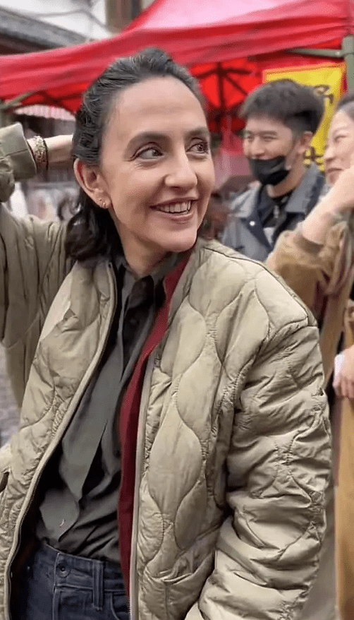 当天是大理某音乐节的活动,刘烨老婆开心的在现场人群中穿梭,从画面中可以看出,安娜身着薄款的军用棉服,里面搭配两件衬衫,打扮非常的特别。