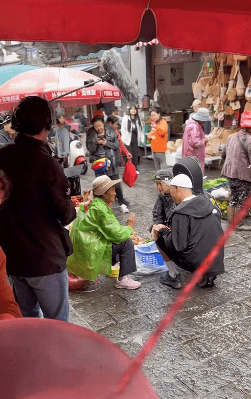 在当地的菜市场里,安娜和老狼他们一边逛菜场,一边还拍摄了一段宣传片,旁边的围观群众纷纷拍照。