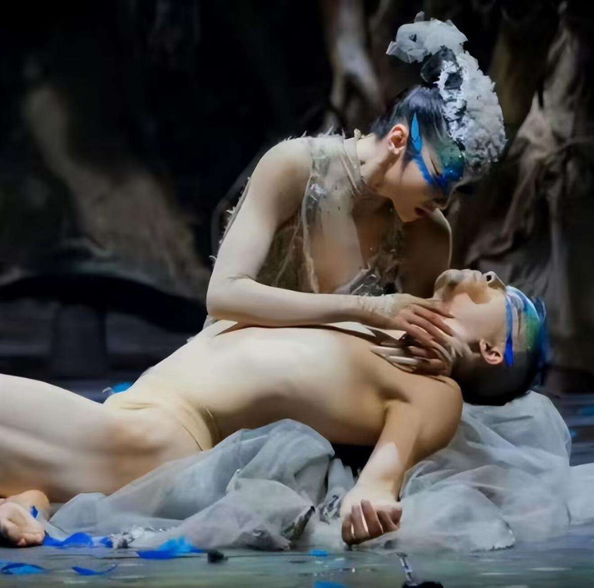 近日,杨丽萍的孔雀舞表演再度惹来争议,有网友晒出一组舞台照片,在她最新编排的舞剧《孔雀》中,有一段男舞者造型尺度很大,全身只穿着一条肉色紧身打底裤,侧躺在女演员怀里的时候,不仔细看会以为是全身赤裸。