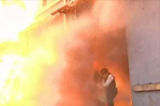 其中有一场俞灏明英雄救美的戏,他需要前往爆炸区救出Selina饰演的女主。