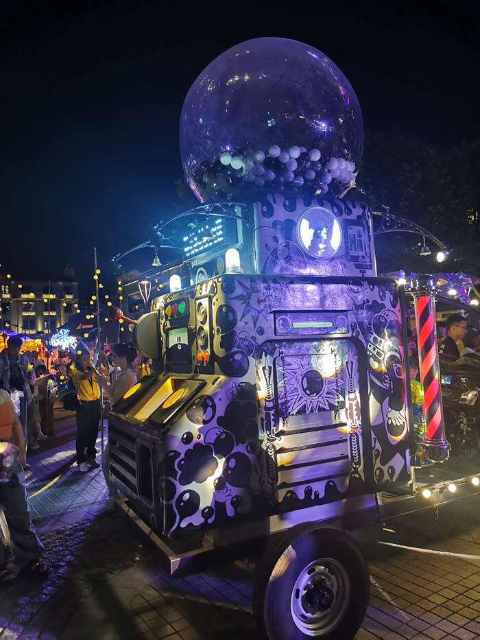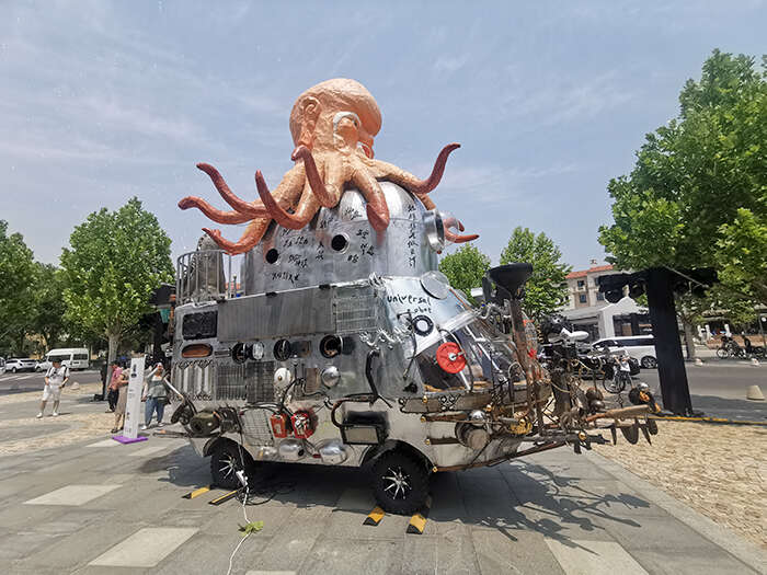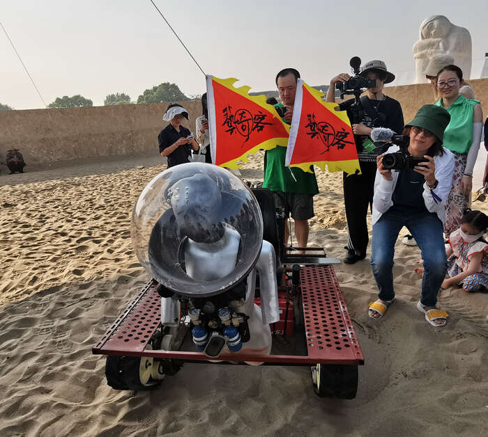 本次候鸟300中非常出彩的一组作品来自“艺奇客”打造的《马良移动照相馆 2.0》《种翅膀的人》《移动的戏剧城堡 1.0》等充满奇幻色彩的车辆。艺奇客来自马良工作室,团队以拼凑美学、低科技派、蒸汽朋克、赛博朋克等艺术风格 为创作手段。在创造与经验梳理中,在西方当代和人工智能大行其道与中国文化内省的过程中,创造出一种全新的艺术风格。
