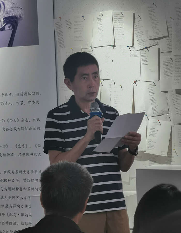 6月17日下午,子集艺术空间呈现了“没有钟的房间”-北岛作品展,包含北岛诗作、摄影的展示,小小的空间内挤满了热情的观众,诗人北岛、作家余华和阿那亚创始人马寅亲临现场,与观众一起参加了“午后读北岛”活动,北岛与现场诗友一起朗读了《回答》《时间的玫瑰》等作品。