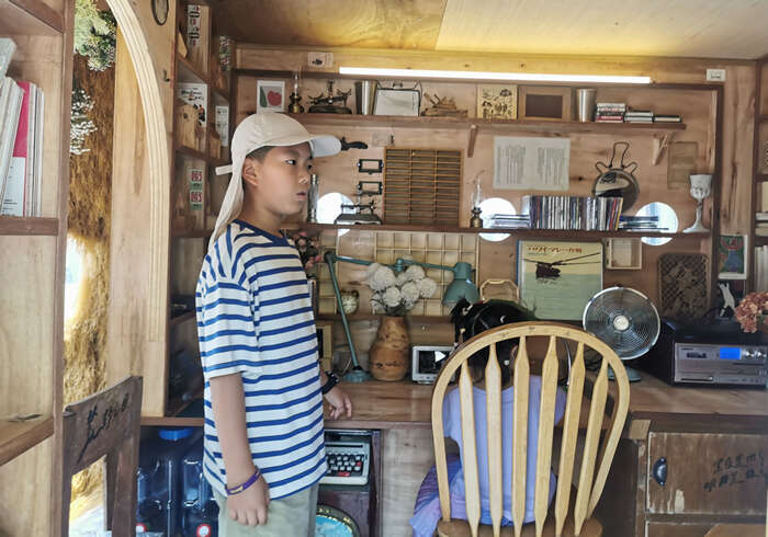 艺术家乔小刀用16天制作了《海怪酒店+万能机器人》,一层驾驶舱、客厅、厨房,二层卧室。(摄影:刘鹏飞)
