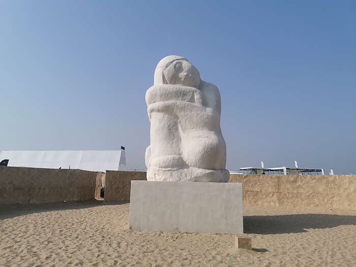 在候鸟沙城中,有部分经典艺术家的作品。进入沙城不久就能看到中国著名雕塑家刘焕章的作品《梦》艺术家采取了高度概括化和简练的形式,靠一个单纯的形体去凝练地表现在睡梦中少女的恬静。作品富含内在情态,充满了感染力和艺术性。