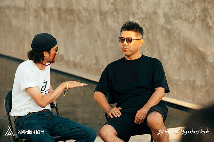 马岩松(右)在媒体见面会上谈沙城设计理念(图片来源:阿那亚戏剧节)