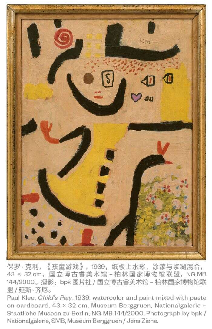 接下来则是在20世纪早期先锋艺术探索中,与毕加索始终保持着亦敌亦友关系的亨利·马蒂斯。作为野兽派的创始人,马蒂斯的10件作品涵盖了其聚焦于人体研究的雕塑和炭笔作品,到具有地中海风情、色彩生动的室内风景画,直至其艺术生涯中后期,对形式与色彩的结合展开探索的创新艺术表达——剪纸作品。而保罗·克利的30余件代表作品则是迄今为止其在中国最全面的展示,在这些自一战期间至其逝世前高产时期的作品中,既有优雅的抽象风景画,它们不禁令人联想到立体主义,及克利在包豪斯任教时所受到的影响,还有人物形象怪诞的《孩童游戏》(1939)。这幅作品位于UCCA Edge的四楼展厅,其中流露出的轻松愉快似乎是对其创作前十年的政治暴力和早期冲突黑暗的一种反击。同时期的其他作品,如毕加索的《大幅斜倚裸像》(1942),则讲述了弥漫于战争时期的那种幽闭恐惧、惶恐焦虑的气氛。