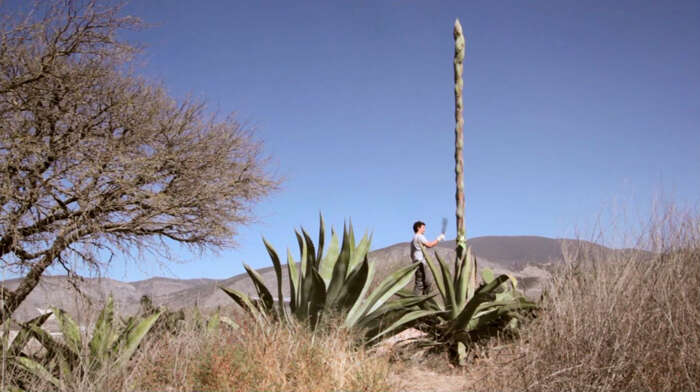 《Agave Agapé》记录了米西卡砍一株墨西哥龙舌兰的过程,龙舌兰是一种开花后会迅速死亡的植物,墨西哥当地有一种传说,在龙舌兰盛开的那一刻,把它的根茎砍掉,它会进入一种新的生命周期里。