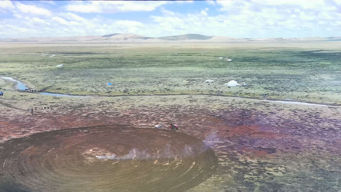 高原牧民在治愈草场,中间为仪式部分(图片:“水系避难所#3”影像截图摄影:刘鹏飞)
