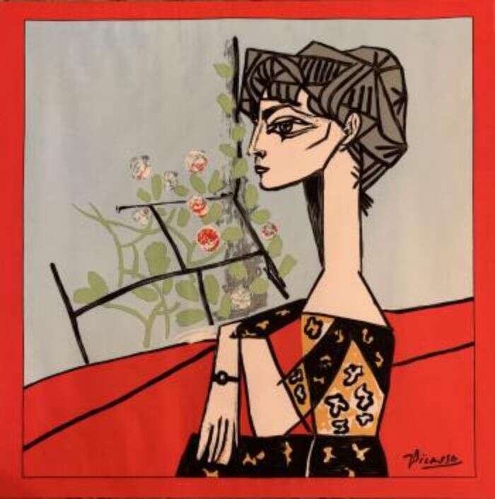 毕加索 《杰奎琳与花》71X71cm 1954年作 套色版画