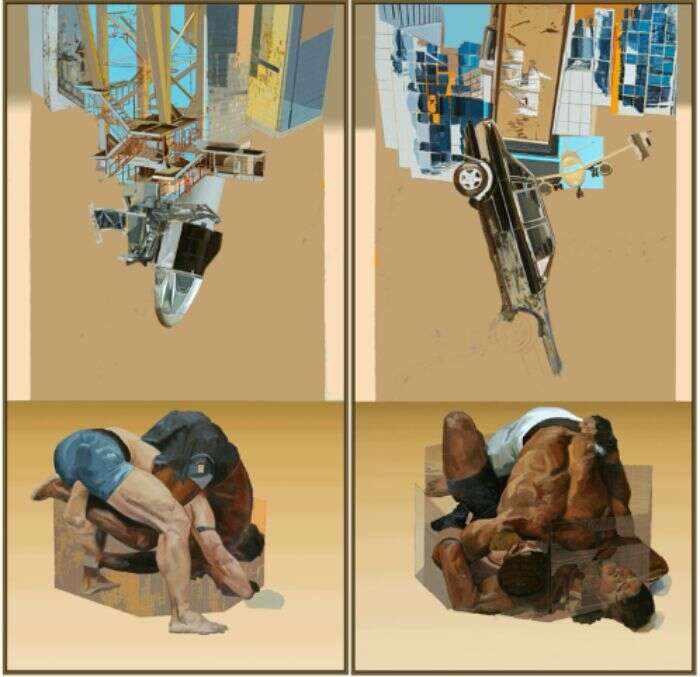 李培鑫 飞行 布面油画 100x200cmx2 2020