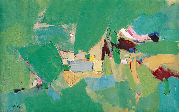 闫振铎(1940- )是新时期以来艺术上追求现代形式语言,探索富有个性表现力的代表性艺术家之一。他的画风抒情而具气概,善于在大块平面色彩对比中,表现人对自然的心灵悸动。他注重色块与点线的节奏,在色彩韵律的大关系中,不放弃细节的精致。在当代画家中,他最值得关注的是隐含在画面里的各种结构变化和点、线、面的处理,充分展现了艺术家在抽象和意象之间,在叙事和抒情之间,在形和色,线条韵律和造型空间等关系中,保持一种基于视觉规律的平衡和突破。