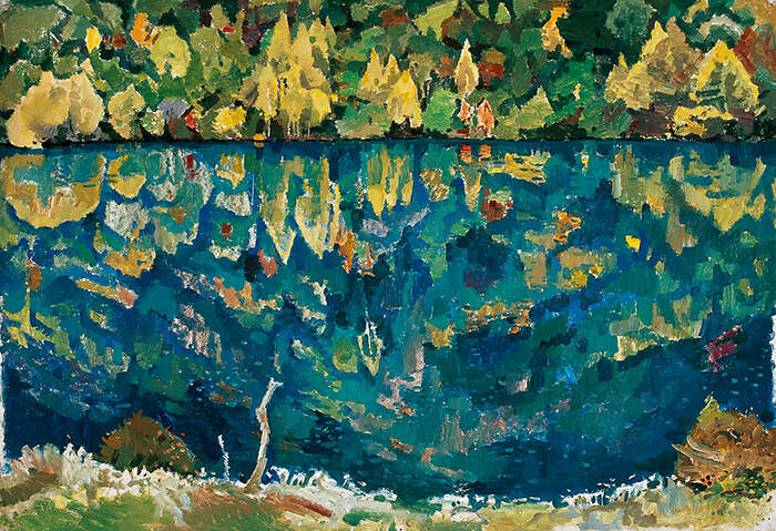 闫振铎 《九寨沟—五花海》 1982年 布面油画 54cm×78.5cm
