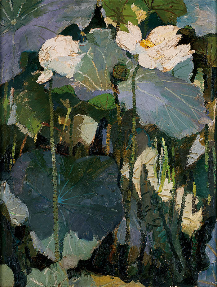闫振铎 《中山公园荷塘写生》 1978年 布面油画 75cm×56cm