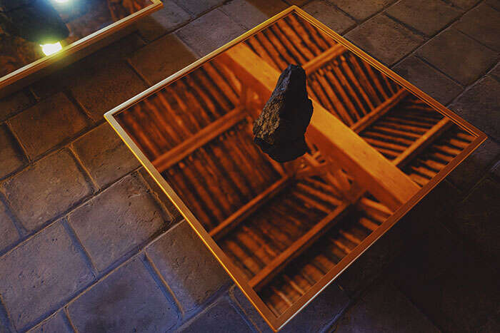 在宋冬看来,煤炭是人类在历史与时间的长河中不断延续发展的一种纪念物。这些煤在地底几亿年形成,为人类带来了巨大的能量。此刻,煤炭被幻化成佛,借用石窟的局部形象,这件作品从外面看,像一座当代的佛寺庙宇,但其实牌匾下无门可入;观众在外面透过石窟洞孔看到的也不是佛像,而是一块块煤炭。“这些煤是我与大同的煤炭工人们一起挑选的,选择的标准是看上去像端坐的佛像即可,它们被不同的人选中,一起放到这个空间里,形成一个类似佛像寺庙的精神空间。这是我对大同过去的文化、历史与当代的一种回应。“