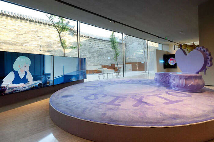 从宋冬营造的迷幻空间中走出,朱利安·奥培的多媒体影像装置把我们瞬间拉回了现实。作为极具艺术综合表现力的虚拟动态艺术创作者,朱利安·奥培关注城市与人的生存空间。高清电子屏上,两个被剥离了生活场景的完全抽象化的人,此刻正欢快地舞跳,极简的人物线条与鲜活的色彩为这座灰白色的古老院落平添了青春活力。