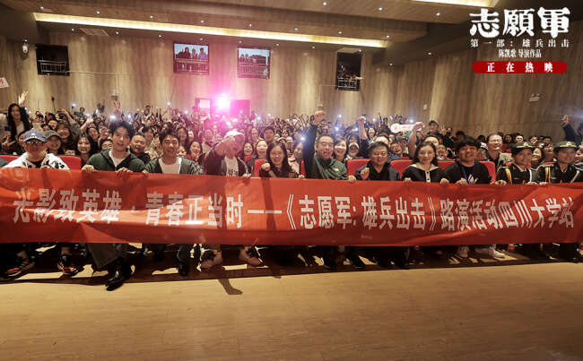 高校行最后一城来到成都,也让主创深感英雄意志传承不息。编剧张珂提到抗美援朝战争中,四川省籍的烈士有两万余人,导演陈凯歌讲起川军的事迹,亦感怀当年的战士英勇。主创大方与现场学子剧透第二、三部的内容。导演陈凯歌表示,第二部讲的是“依依惜别”四个字。“在战火连天、事关生死的战场上,一家人才终于得以团圆,会带来一个什么样的结局,这是值得观众期待的。”编剧也表示:“为什么电影要做成三部曲,是因为这样的故事看一部是不过瘾的。这个故事中有很多组不同的人物,展现了很多轰轰烈烈的战争中的传奇故事,要看够三部才够爽。”