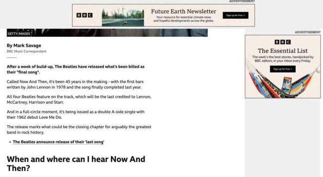 标题:传奇摇滚乐队披头士最终单曲「Now And Then」发行