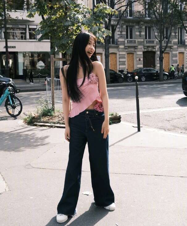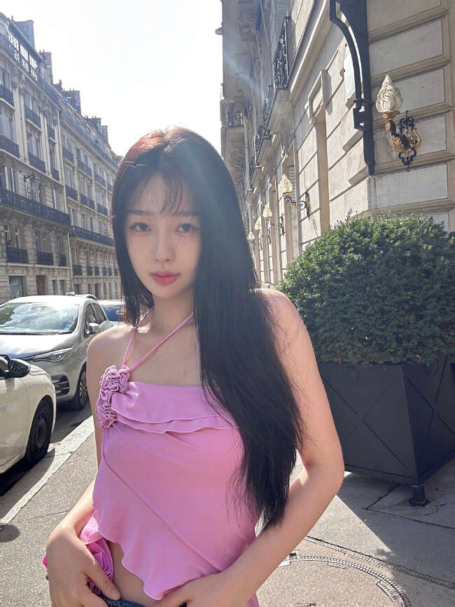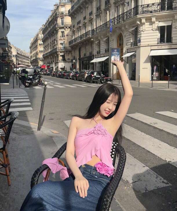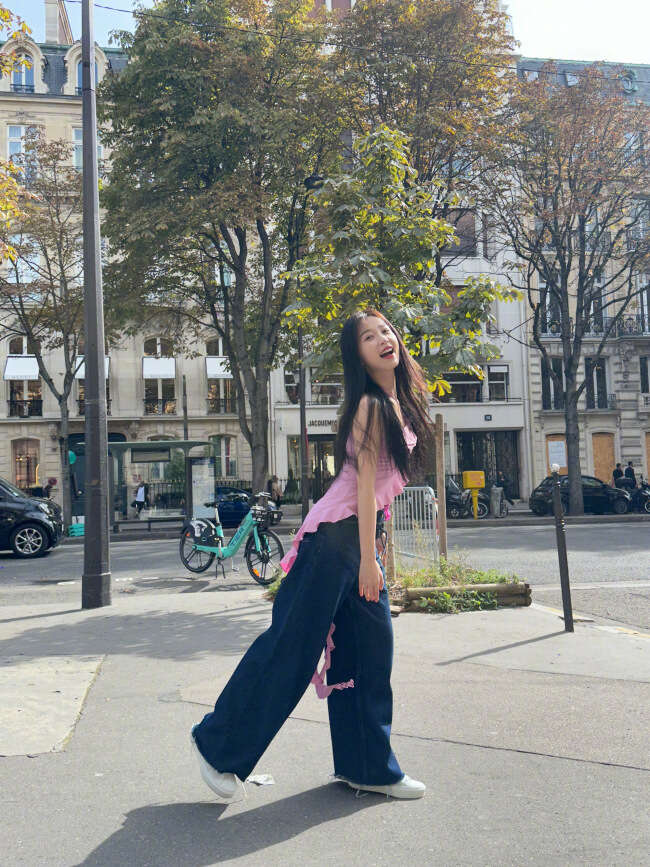 虞书欣的一组美照曝光,她披散黑色长发,身穿粉色挂脖吊带又甜又辣,在街头歪头甜笑卖萌。