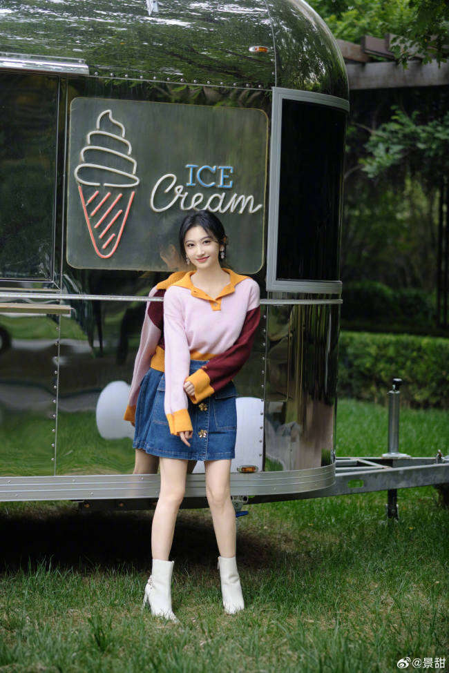 景甜的一组美照曝光,她身穿彩色针织衫搭配牛仔短裤露出纤细美腿,在氤氲光线下笑容温暖治愈。