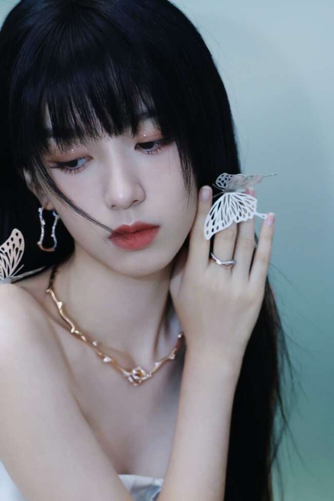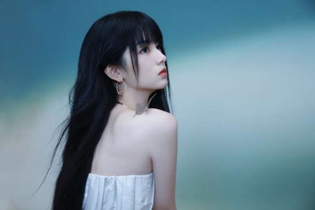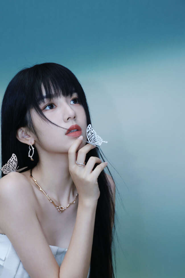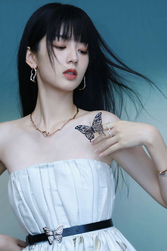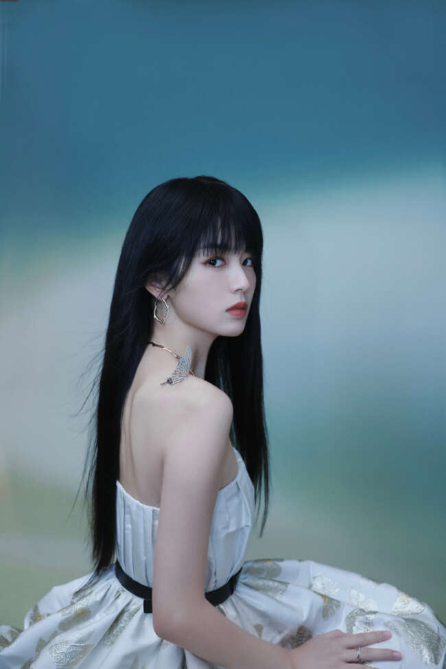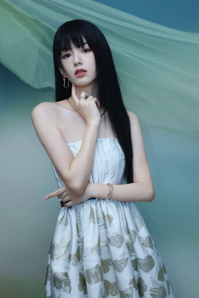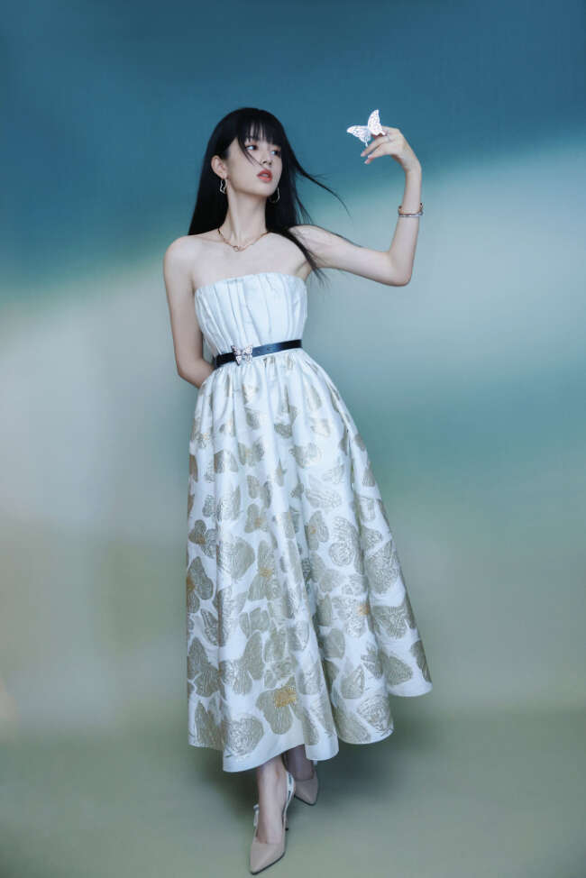 周也全新大片气质清新,抹胸裙尽显好身材。