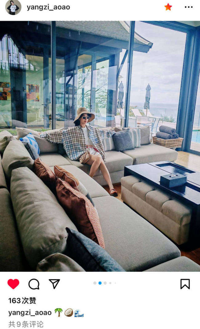 标题:杨紫晒泰国游玩plog 穿粉色针织吊带身材曼妙