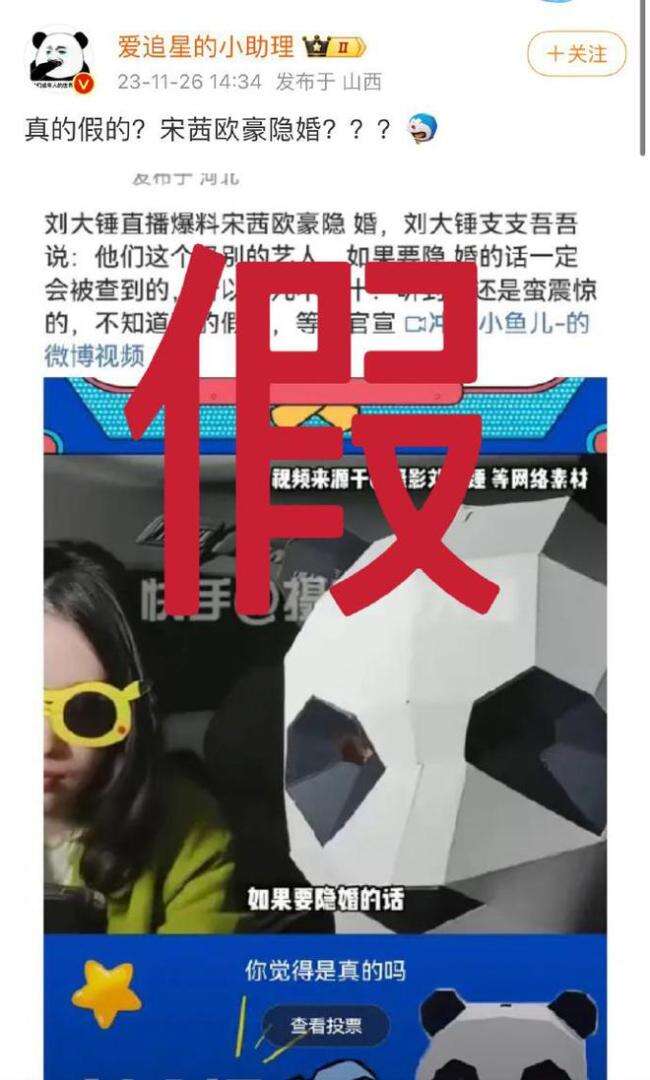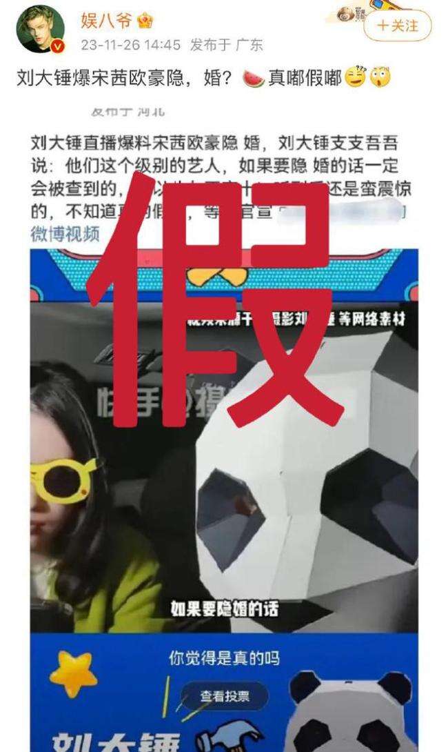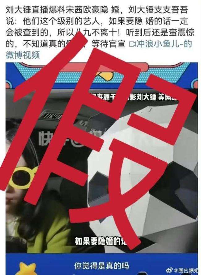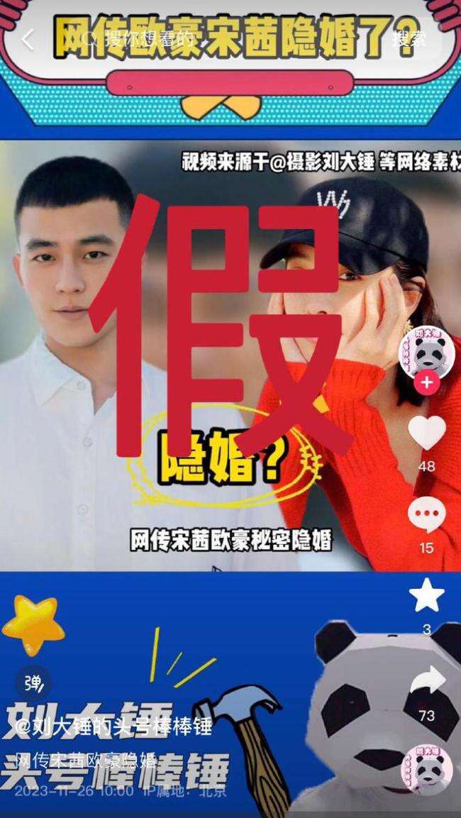 据悉,是因为知名狗仔“刘大锤”在直播的过程中爆料,欧豪和宋茜秘恋隐婚了,还强调他们这个级别的艺人,如果要隐婚的话是一定会被查到的,所以八九不离十了。如此信誓旦旦的言语,也让不少网友信以为真,期待着他们的官宣。