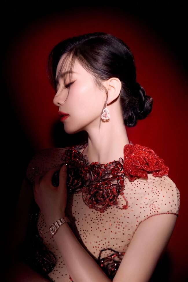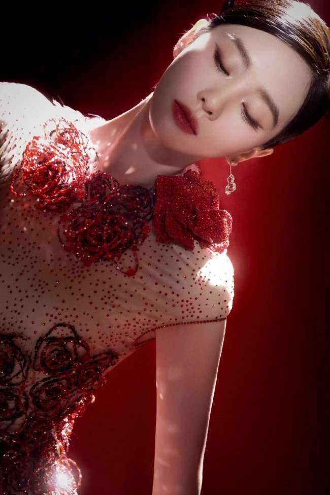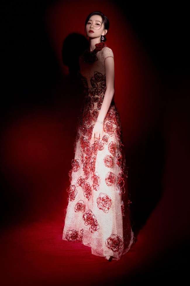 12月5日,刘诗诗出席微博视界大会造型写真释出,刘诗诗身穿长裙红玫瑰点缀,举止投足温柔优雅热烈。
