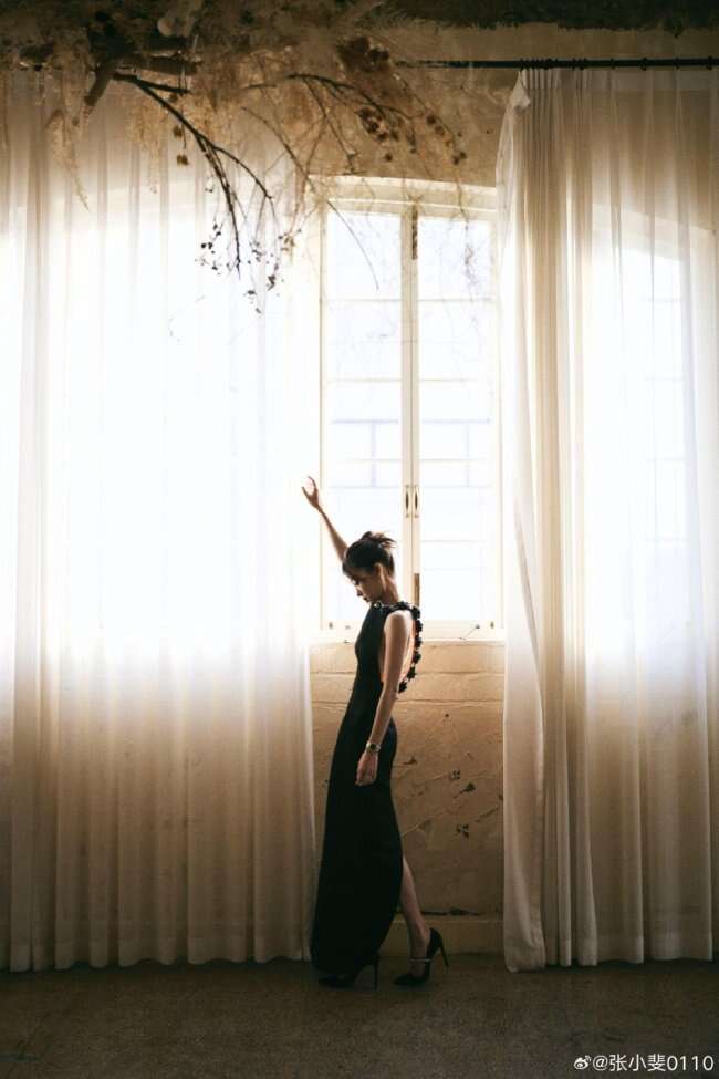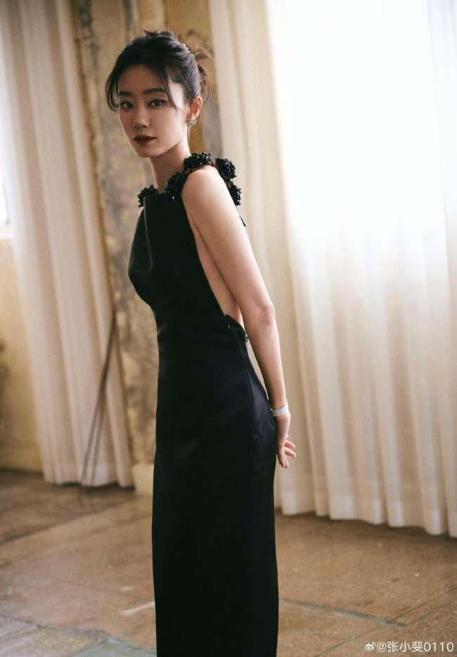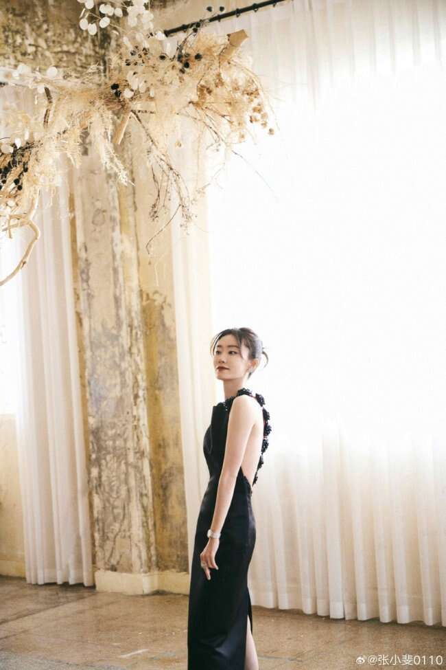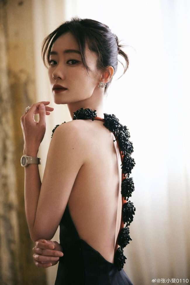 12月5日,张小斐出席微博视界大会造型写真曝光,张小斐身穿黑色露背裙,肩颈背沟优越,好似高贵黑天鹅。