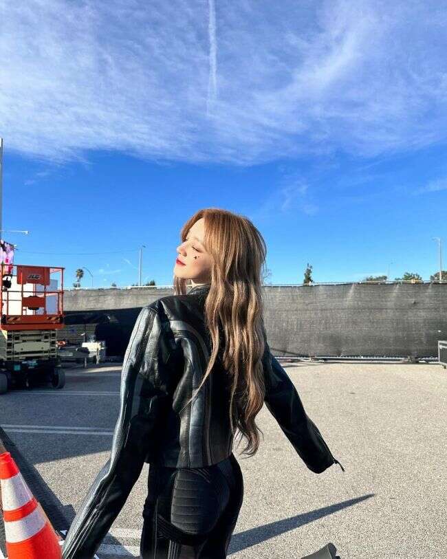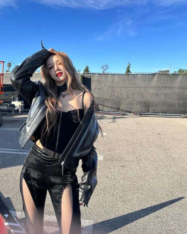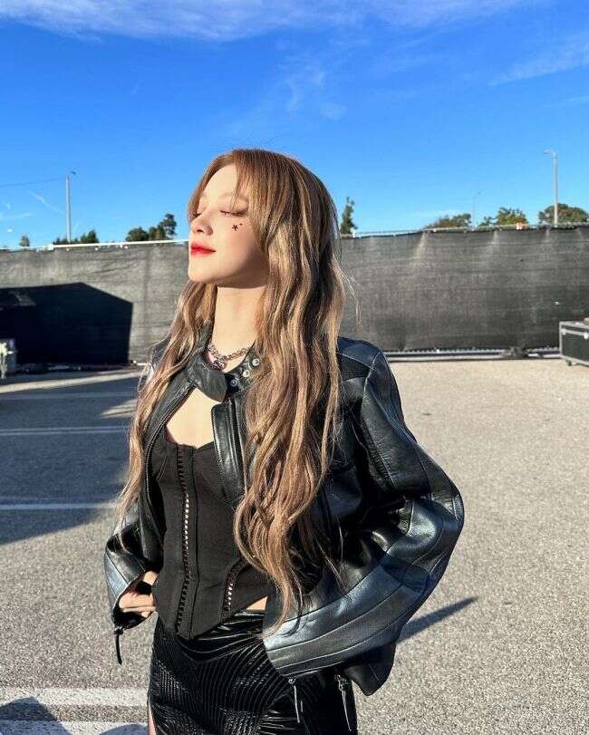 宋雨琦的一组美照曝光,她身穿皮衣化身辣妹,肩披金色卷发搭配红唇又甜又酷。