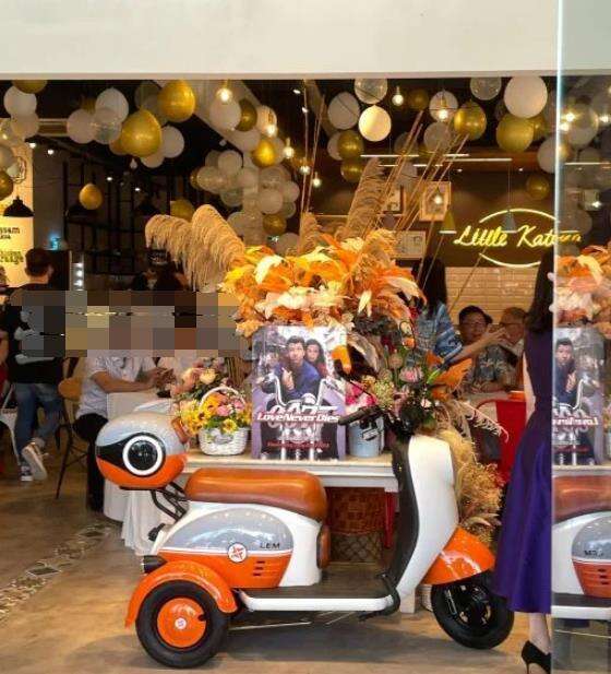 在餐厅入口处,他们摆放了一幅搞笑海报,上面写着“Love Never Dies”,并在内部陈列了记录两人恋爱史的内容。