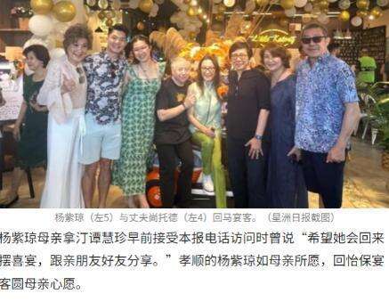 据报道,杨紫琼夫妇在马来西亚的一家餐厅举行了宴请活动,欢迎亲朋好友参加。