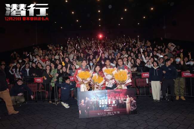 活动现场,有观众给主创们送上了紫色秋裤,代表着对《潜行》的美好祝愿,主创们也现场用东北话喊出了观众送出的特殊祝福——看《潜行》,“紫腚”行(指定行)!接连几场的映后互动,观众们的热情依旧难以抵挡,还给主创们送上了军大衣、花棉袄,直接集齐了“东北三件套”。主创们也不辜负粉丝们的心意,直接现场穿上展示一番,彭于晏还幽默回应“下一场路演有衣服穿了!”