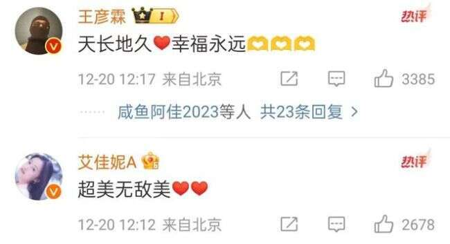 当然,在他官宣的时候,也是有明星好友过来留言祝福的,比如张碧晨和王唯旖。