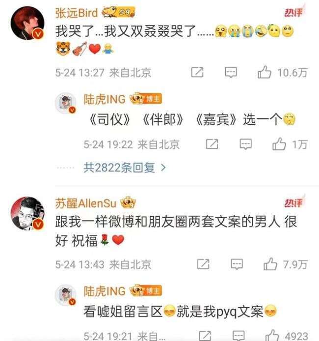 张远激动到哭,陆虎让他在伴郎、司仪、嘉宾里三选一,苏醒则是比较直接,称陆虎在不同的社交平台,文案不同。