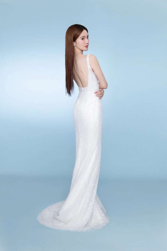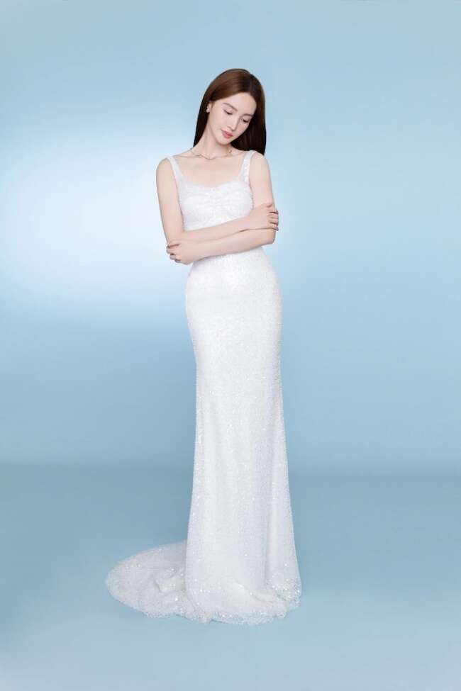 标题:金晨着纯白色礼裙大秀美背 曲线曼妙温柔动人