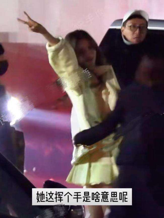 金晨一边上车一边向粉丝挥手致意,时不时转头向后看一眼,以表示对粉丝的感谢。