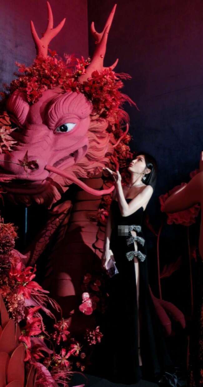 秦岚身穿黑色开衩礼服出席活动。