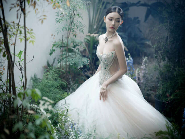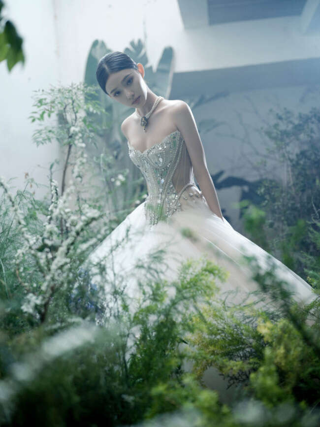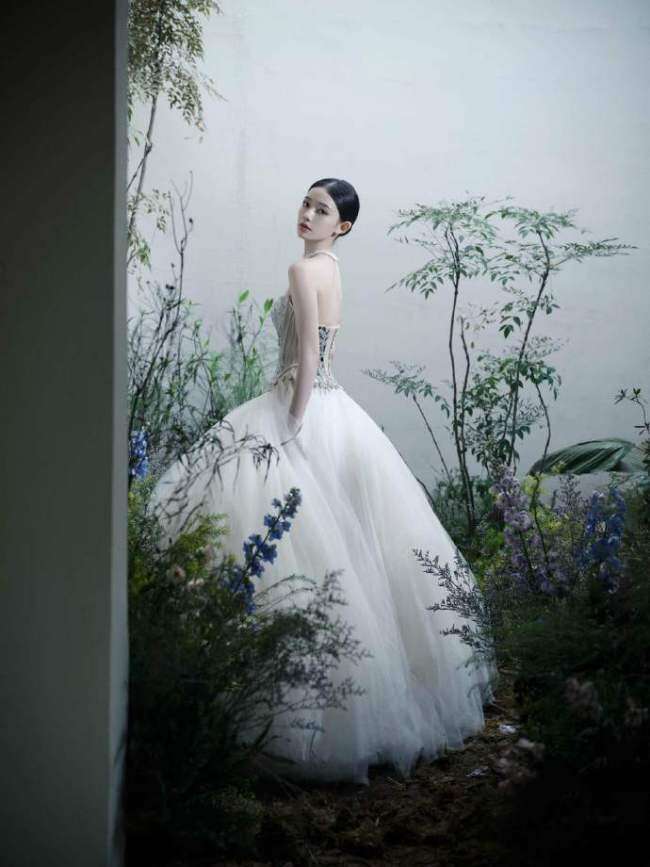 林允晒出一组美照,她身穿抹胸蓬蓬裙,尽显肩颈优越线条。双手捧着花朵像极了林中走出的精灵公主。