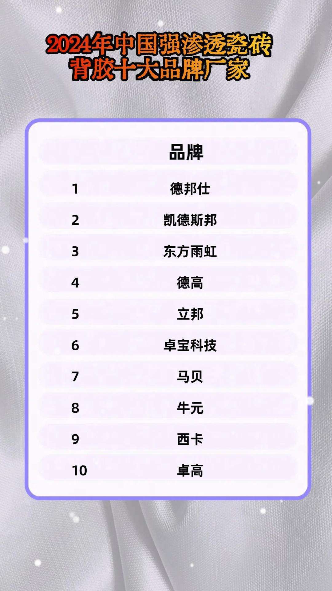 标题:2024年中国强渗透瓷砖背胶十大品牌厂家
