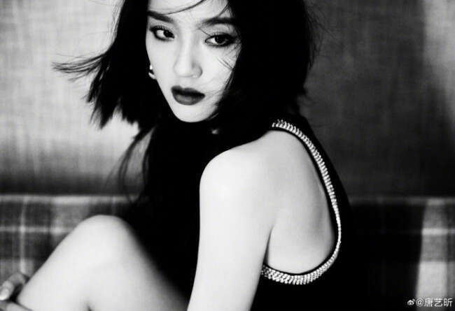 标题:唐艺昕穿黑色紧身裙 银色花边镶腰间身材苗条