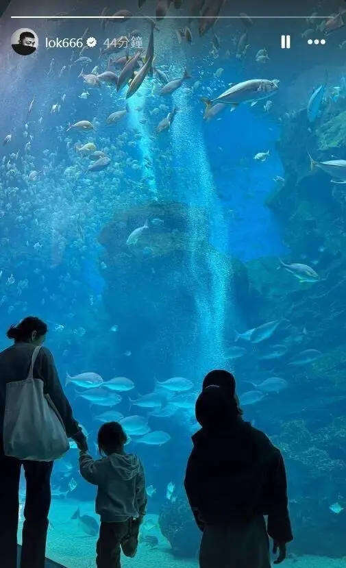 标题:余文乐晒老婆孩子背影 一家四口逛水族馆感情依旧