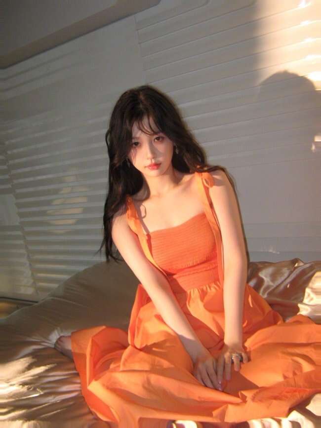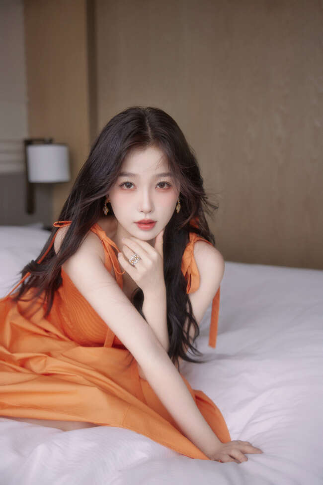 近日,虞书欣晒出一组写真图。虞书欣身穿橙色吊带连衣裙,搭配韩系妆容,化身甜橙少女,可爱十足!