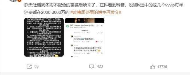 事实也确实如此,首先能买奢侈品的人经济本就比较宽裕,能够被品牌方邀请至少是超级VIP级别的,保守估计一年在该品牌的消费就超过两千万,周冬雨虽然是明星,但也不过是拿品牌方的钱办事,在这种富人眼中并没有那么高高在上,态度差自然会被投诉。
