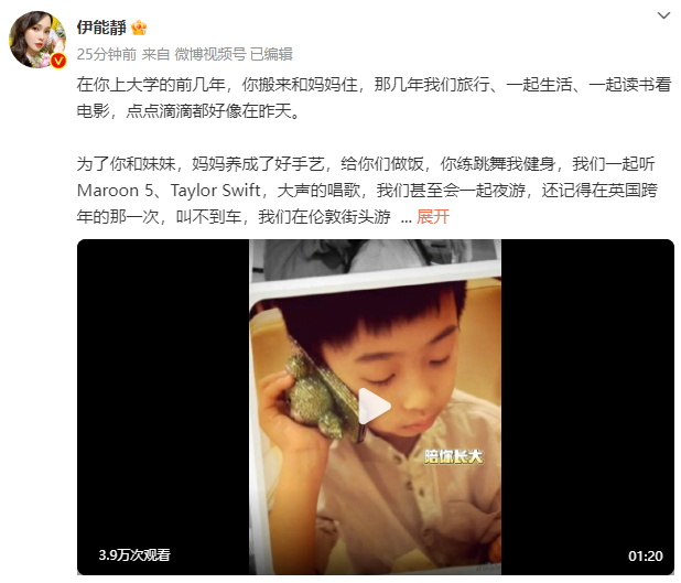 3月16日是伊能静儿子恩利22岁生日。伊能静发长文为儿子庆生,写道“你的心是如此清澈明亮!我从来没看过那么自由的灵魂,自由不是没有边界,真正的自由是从知道边界学会尊重而来的”,“今天是你22岁生日,妈妈祝福你,永远赤诚善良,在人间游玩,清醒又尽兴。