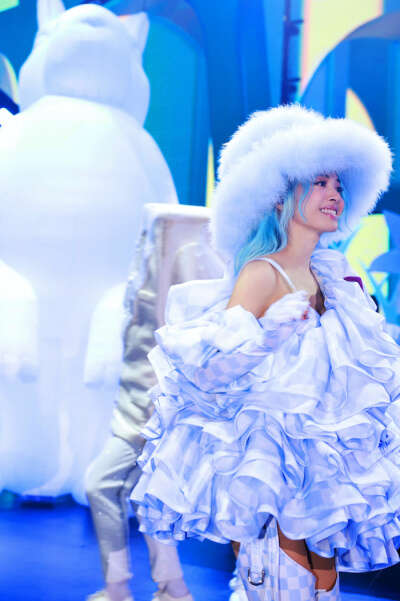 演出当晚,蔡依林身着7套全新设计的《Ugly Beauty》主题服装穿梭在不同音乐章节里。“每一次巡演都好像是来见婆婆的,必须让婆婆觉得开心”蔡依林也完美的兑现了这句承诺。开场一套金色胸甲,头顶圆环身披金纱,如神祇降临,出现在舞台中央,以一首《恶之必要》作为序曲,开启了今晚的“战场”。演唱会中段,蔡依林全身套上蓝白格蓬蓬短裙,头顶毛绒浅蓝礼帽,小跑着来到延伸台与粉丝们热情互动,“脑公们都来了吗”,台下歌迷卖力挥手“老公在这儿”。前卫、大胆、多变、超现实主义是蔡依林UB演唱会不可或缺的元素。全新服装一经曝光,网络热度不断“蓝发少女回归纯真”“红衣女王太飒了”“蔡依林真的是潮流前线引领者,随时都在提醒人们紧跟时代”。