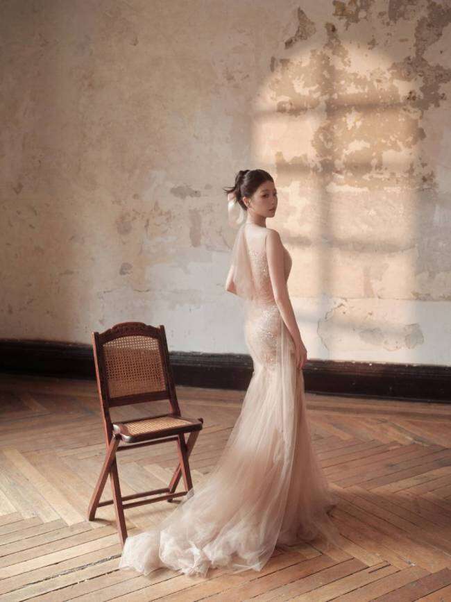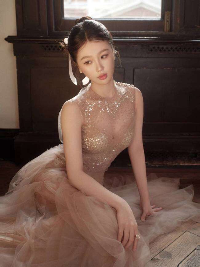 标题:虞书欣透视纱裙柔光静谧 蹲坐墙角情绪感染力十足