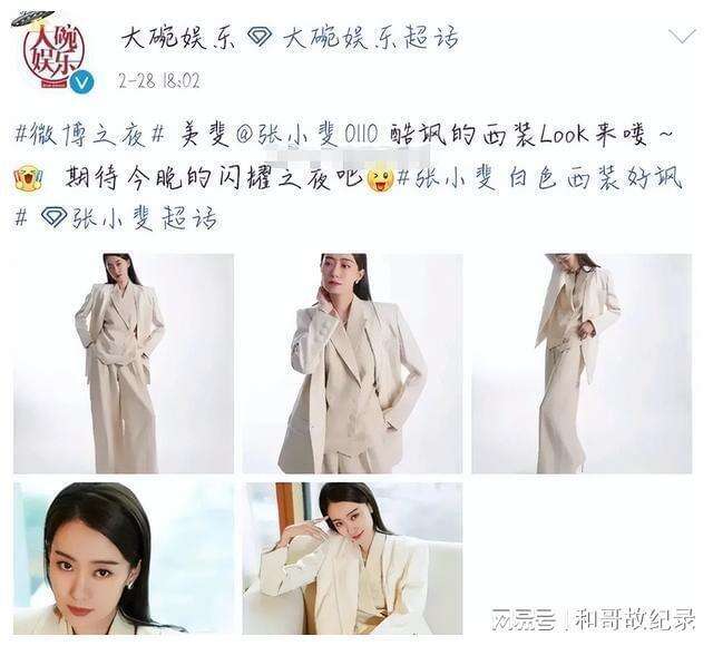 按正常流程来看,微博之夜上张小斐穿了两套衣服,对此应该要出两套图。如果有服装、珠宝等品牌赞助,一般会按赞助品牌的要求露出;而且对于整个的妆容以及设想也是要十分注意的。